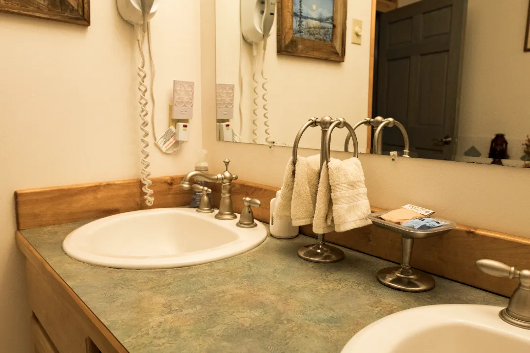- Private Bath with Jacuzzi Tub & Shower:Â Unwind in your private bath, equipped with a luxurious Jacuzzi tub and shower, perfect for relaxation after a day of adventures.